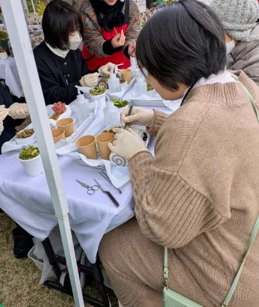 多肉の寄せ植えの体験も行っております。 かわいい鉢にお好きな多肉植物を植えていただき、オリジナルの寄せ植え鉢を作ってみてください。 一つひとつ悩んで、愛情を込めて植えていき、時間をかけて作成した鉢はとってもかわいいですよ! ワークショップのご予約はこちらからどうぞ。